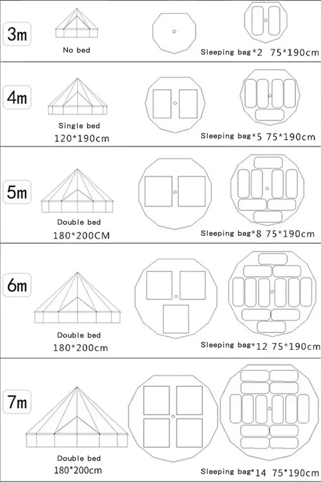 2024 Hot Sale 3M/4M/5M/6M/7M Outdoor Camping Luxury Yurt Zelt Glamping 4 Season 5-12 Persons Family Canvas Oxford Bell Tent