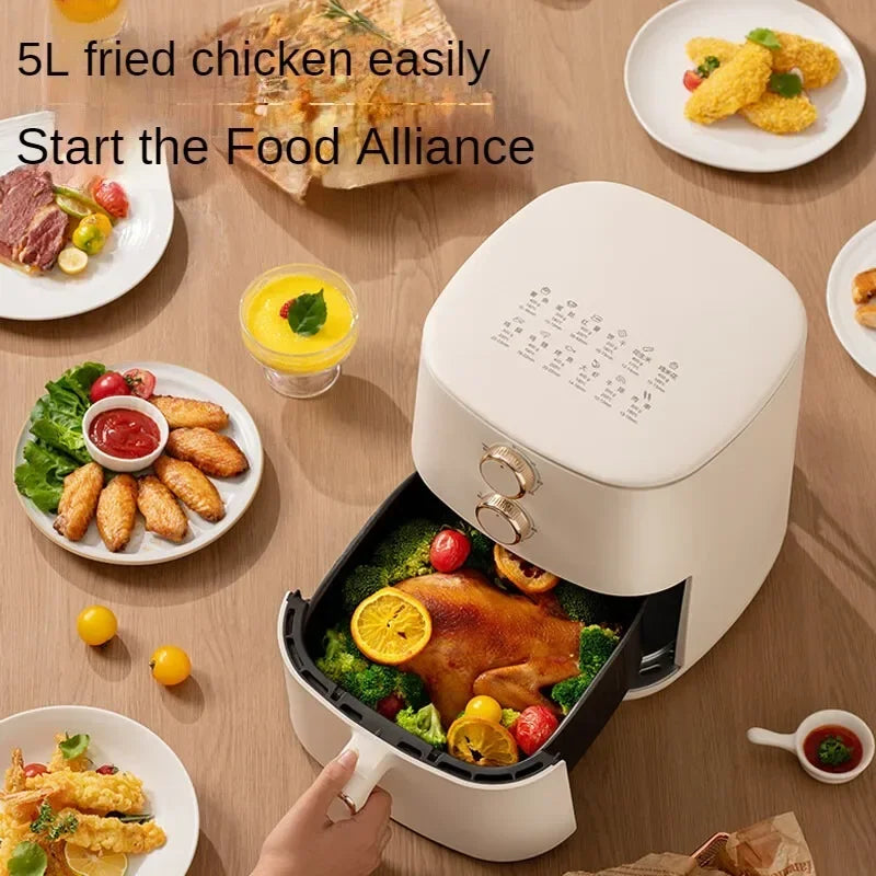 Air Fryer Household 5L Steam Electric Fryer Full Automatic Oilfree Low-fat Frying Without Turning Over Potato Chip Machine