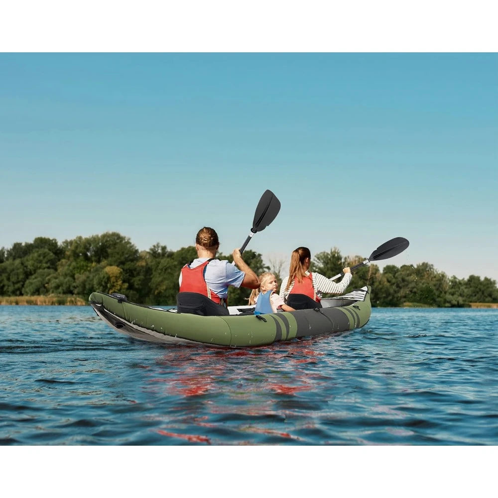 - Recreational and Touring Kayak: Designed for recreational paddling. This Inflatable 3 Person Kayak can be used for two adults and a child/dog. Kayaks provides excellent performance in both calm and rough waters. River,lake and ocean kayaks boat for fishing, travel, and exploration