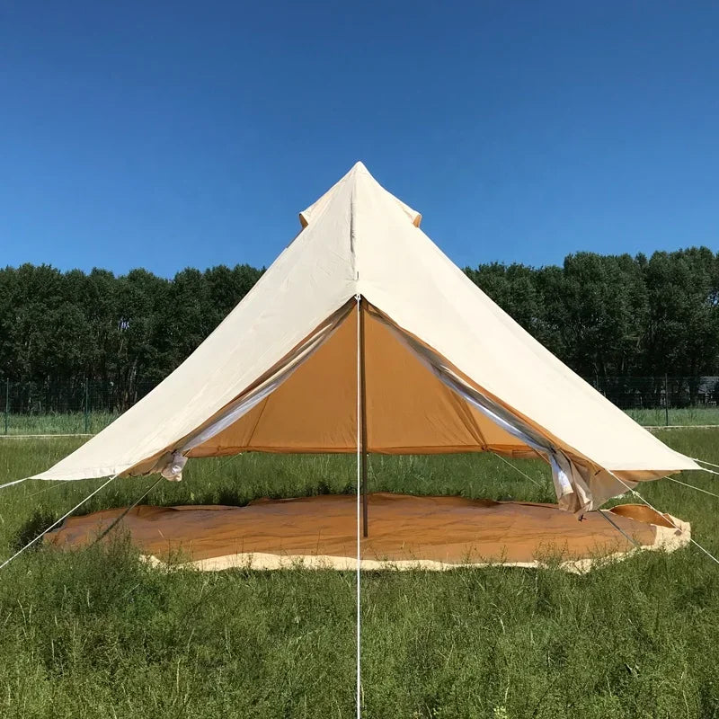 1. The canvas bell tent is equipped with a heavy duty groundsheet that is attached to the tent with a zipper. The groundsheet is made out of PVC and weighs 540 g/m²