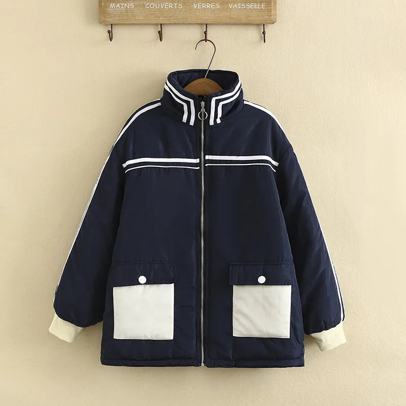Plus Size Winter Coat For Women Wear Long Sleeve Stand-Up Collar Thickened Sandwich Down Cotton Padded Jacket Large Size Coat