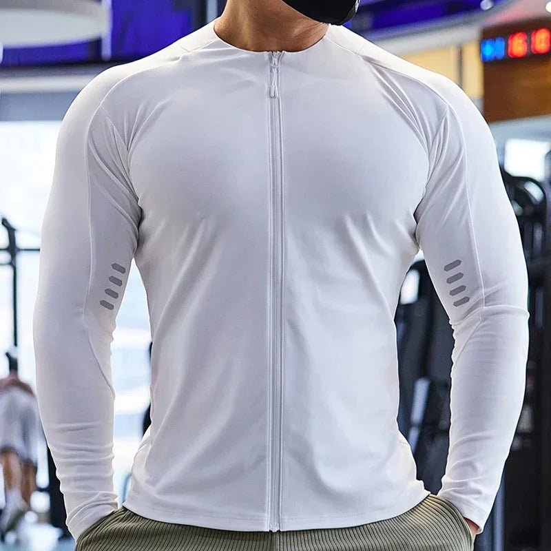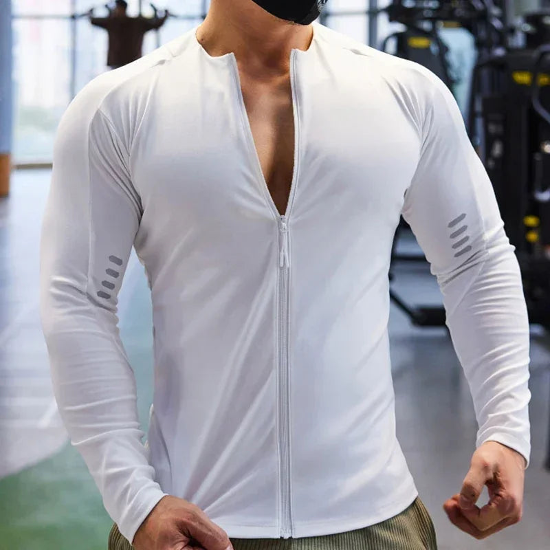 Sun Protection Long-sleeved Sweatshirt Men Stand-up Collar Stretch Sportswear Fitness Sports Running Zip Jacket Compression Tops