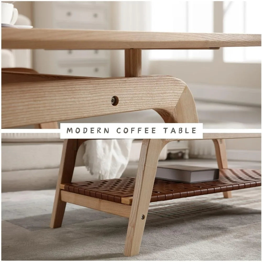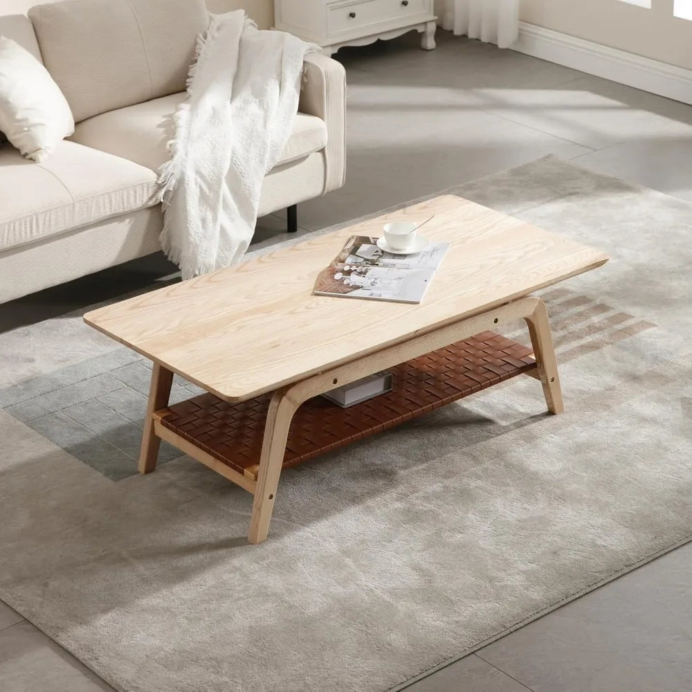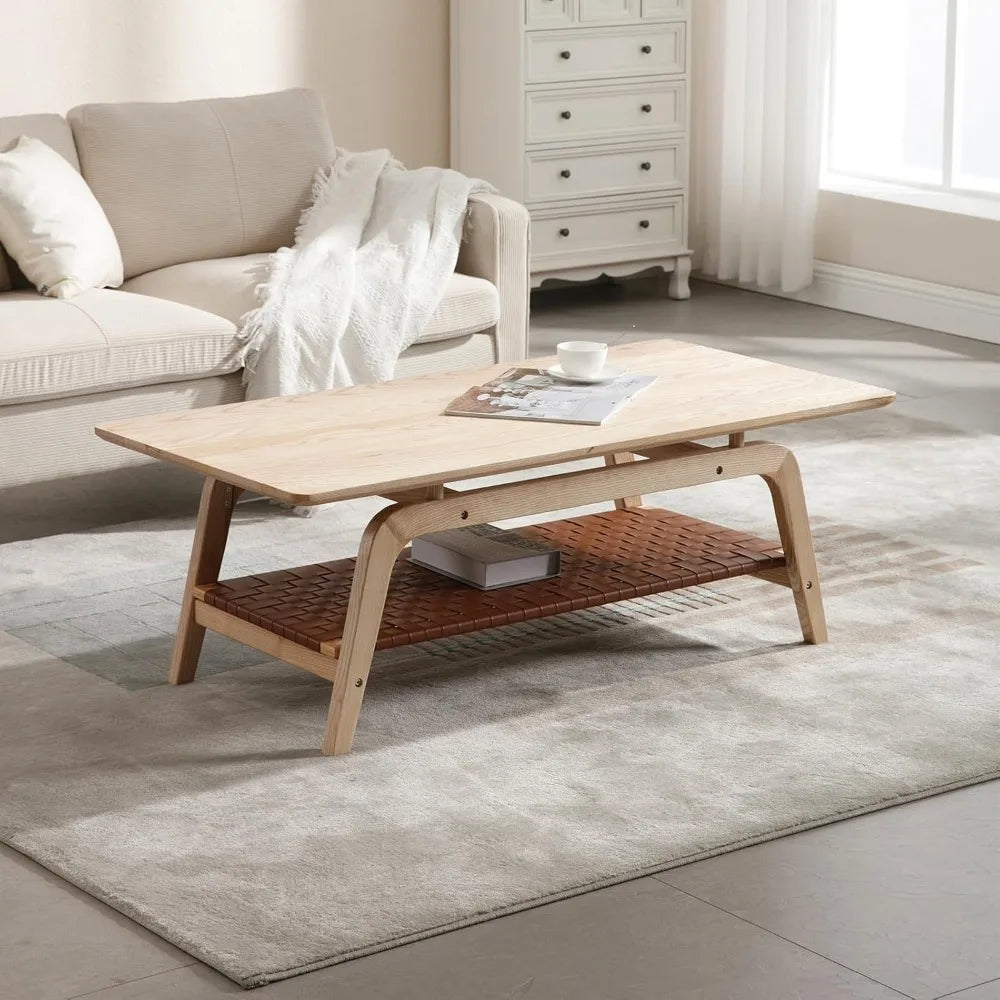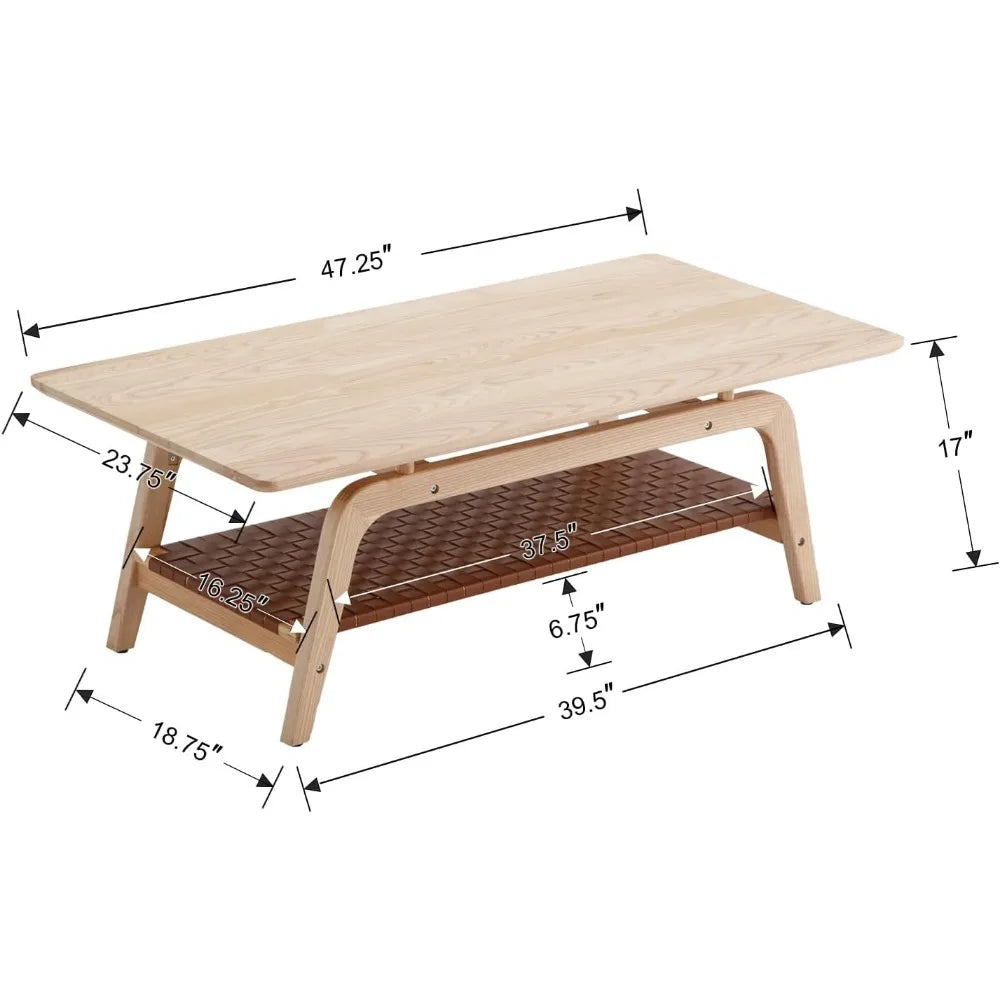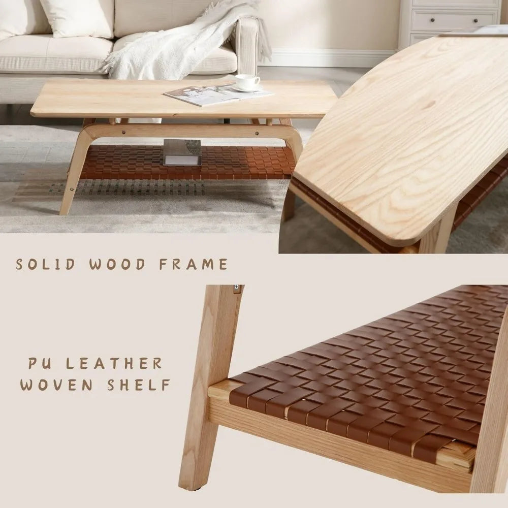 - Open Storage Shelves: This center table is not only equipped with a spacious tabletop, which provides a space to display plants, coasters, and coffee. The PU woven shelf also provides extra storage space and strong support to help you organize the remote control, magazines, and books, keeping your room tidy and neat